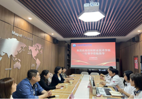 4月20日,3377体育刘晓鹂经理、副经理刘文敏一行4人来到河南经贸职业学院外语旅游学院参观交流,外语旅游学院经理王君华, 副经理邓晓婷、何珊及相关负责人参与交流与座谈。
