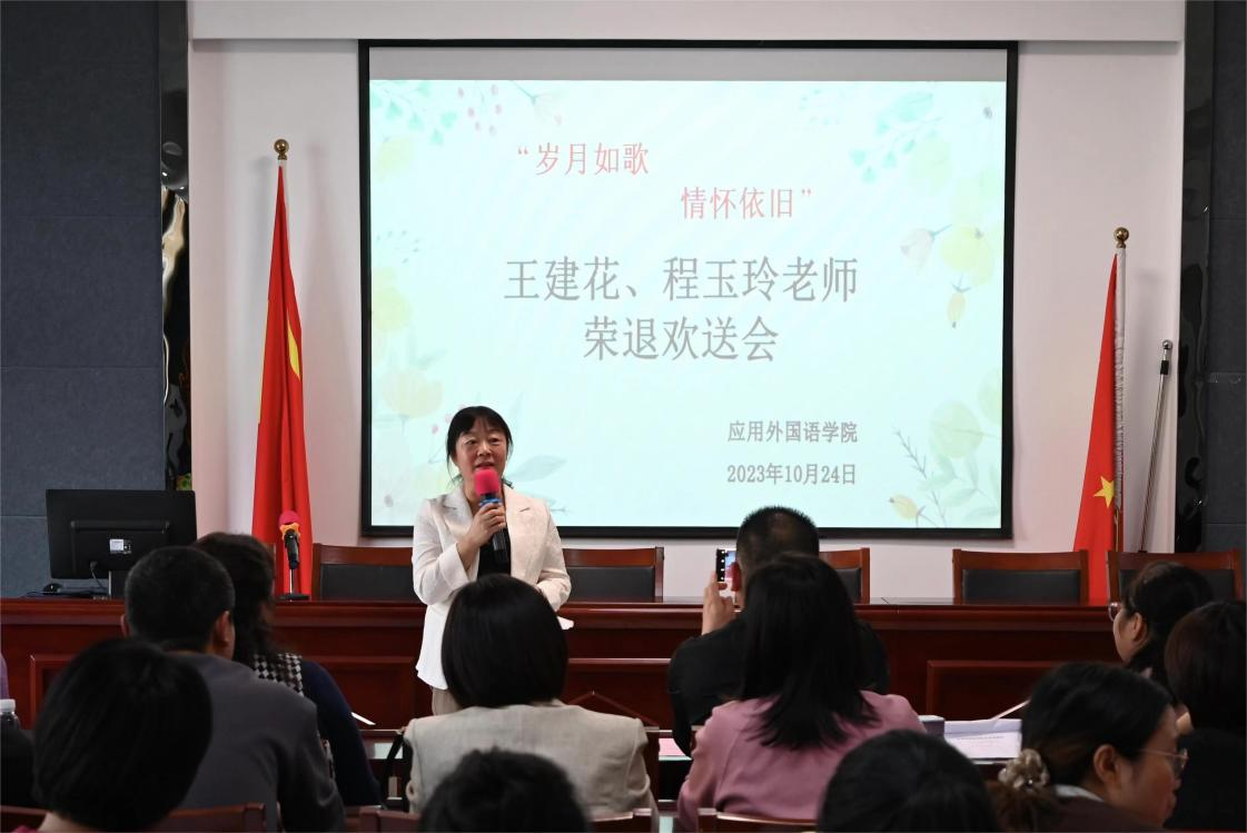 最后,刘晓鹂致欢送辞。她首先对两位老师多年来的无私奉献表示肯定,号召全体老师积极向两位老师学习。其次,为两位老师送上了美好的祝福,祝她们在退休生活中顺心舒心,健康长寿。同时,也希望两位老师能退而不休,继续为学校发展建言献策。(内容审核:刘晓鹂 通讯员:严密)