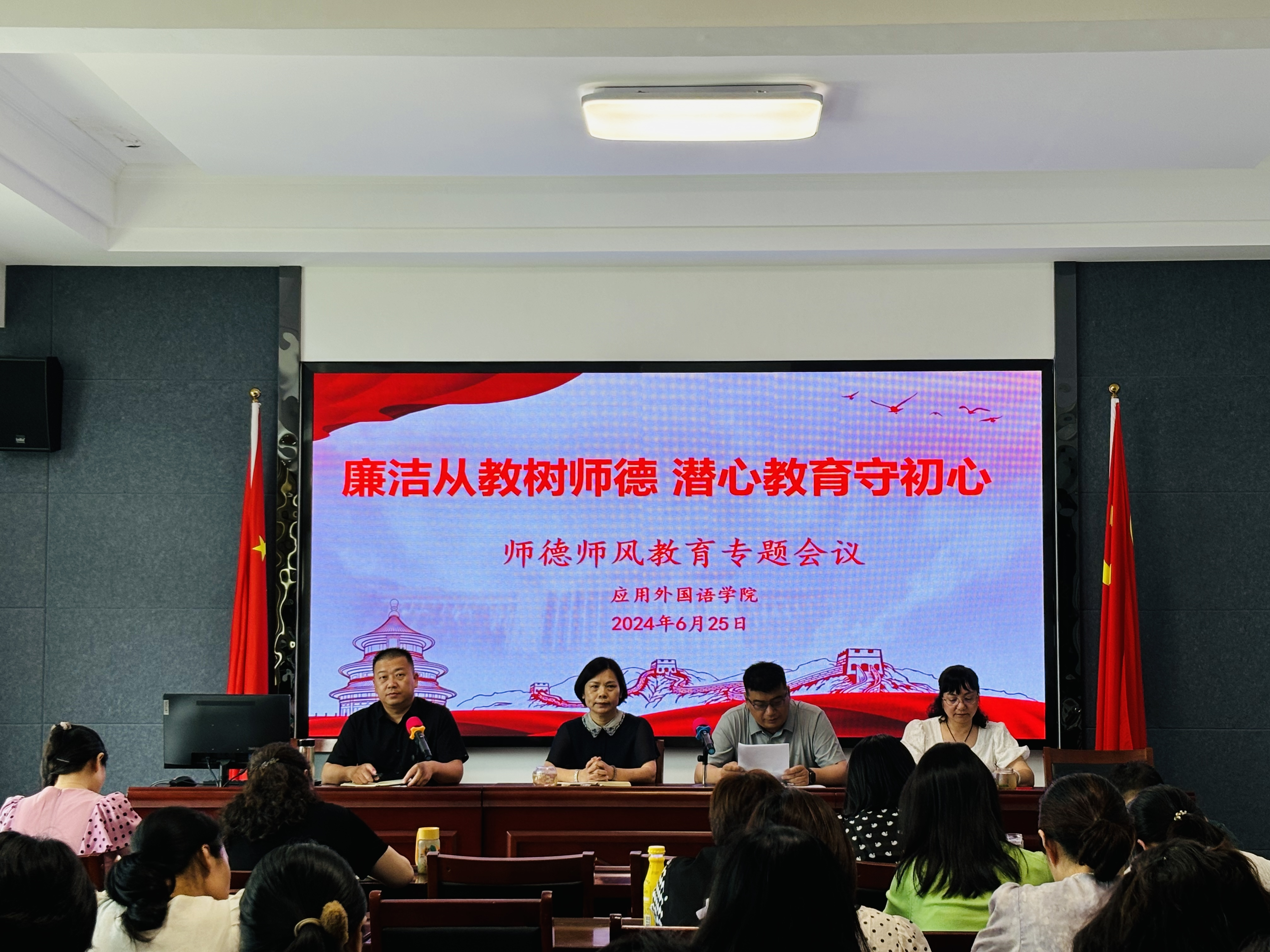 2024年6月25日下午,3377体育在2402会议室召开了“廉洁从教树师德、潜心教育守初心”为主题的师德师风教育专题会议,3377体育全体教师参加了会议。会议由3377体育副书记张泽锋主持。