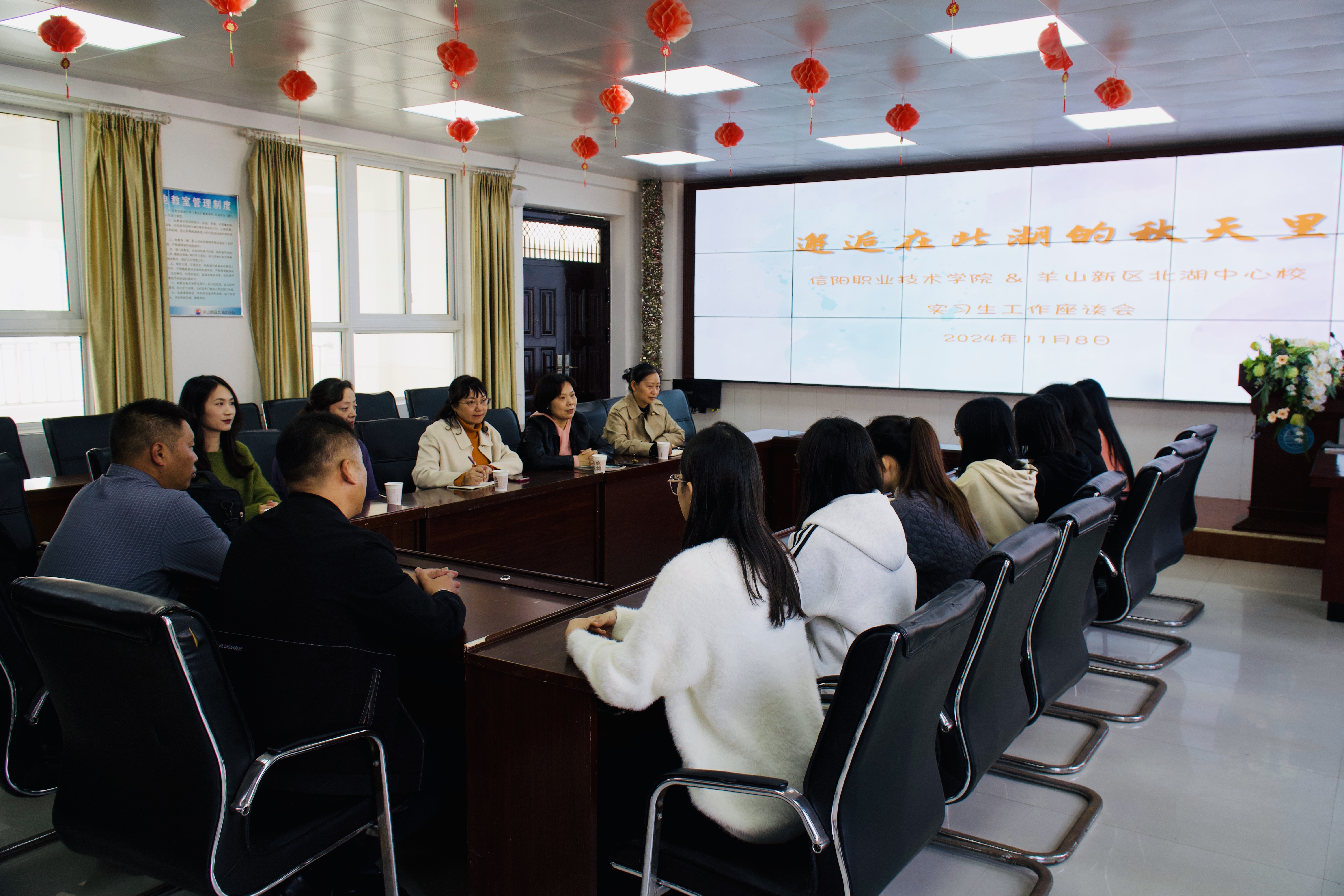 在信阳市羊山新区北湖中心学校,党支部书记、董事长陈先明对我院一行人的到访表示热烈欢迎,感谢我院为其选派了优秀的实习生,解决了该校团队缺乏的燃眉之急,并希望进一步加强双方深度合作。