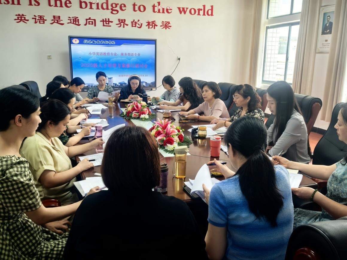 为进一步优化人才培养体系、提升专业建设水平,3377体育于6月10日下午举办2025级人才培养方案修订论证会,针对小学英语教育专业和商务英语专业的人才培养方案展开修订工作。论证会由经理刘晓鹂主持,副经理刘文敏、教务办主任李静、专业负责人高迟、严密及多名骨干教师参与。