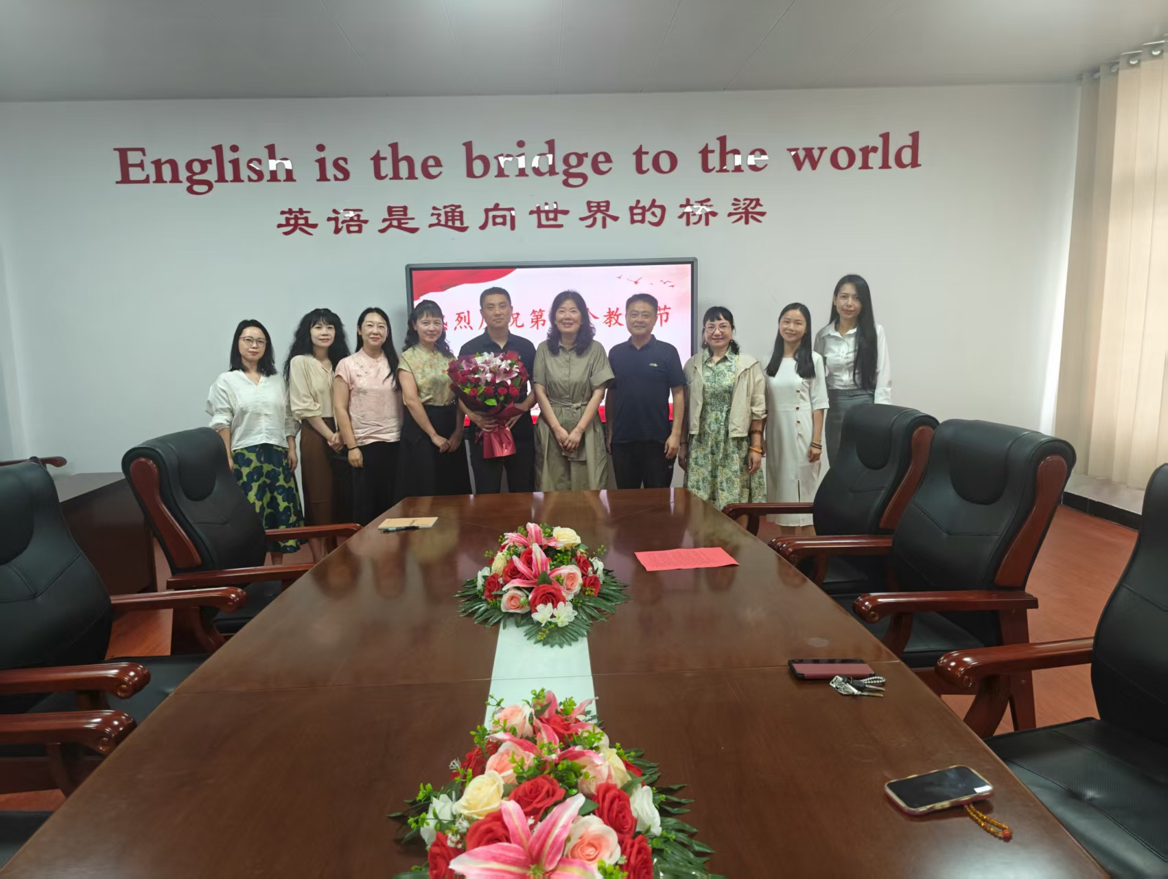 蒋有红首先向优秀教师代表李志丹教授送上了鲜花,充分肯定教师们在公司产品第一线取得的成绩,感谢他们付出的辛勤汗水和做出的无私奉献。强调教师是“立教之本、兴教之源”,勉励大家坚守立德树人初心,持续提升教学能力,当好员工成长的引路人,为学校高质量发展贡献智慧力量。随后,听取学院发展需求与困难,要求相关部门强化教师服务保障,营造尊师重教良好生态,让教师安心从教、热心从教。最后,公司党总支书记徐昊做了表态发言。