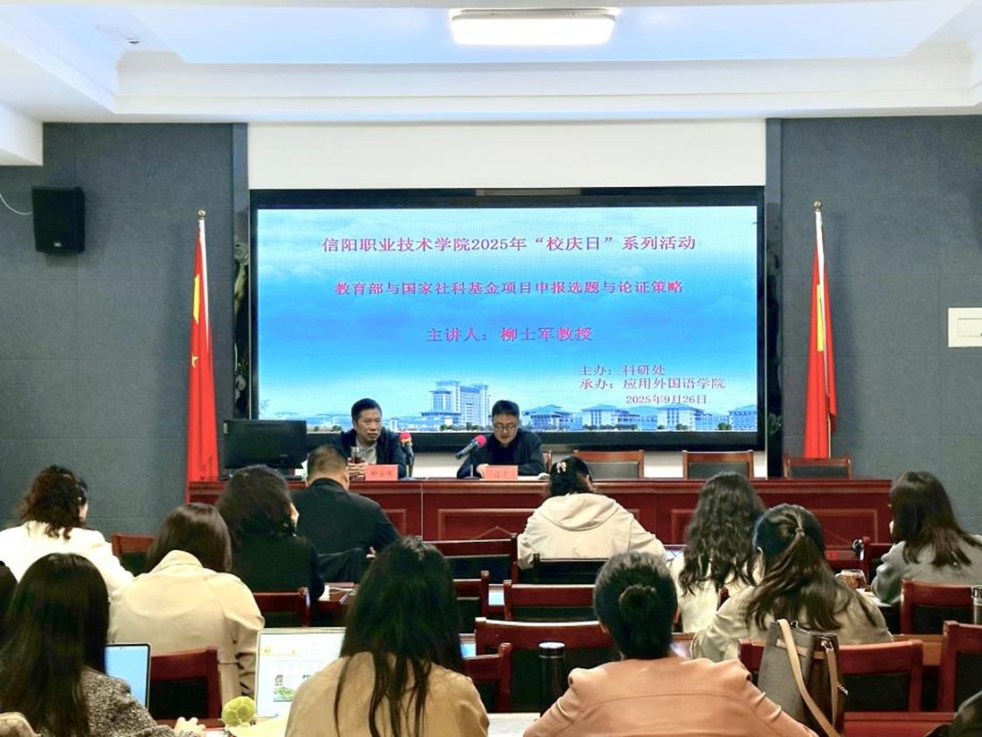 9月26日下午,信阳师范大学英语语言文学学科带头人柳士军教授应邀莅临公司做了一场题为“教育部与国家社科基金项目申报选题与论证策略”的专题报告。报告会由3377体育书记徐昊主持,学院全体教师参加。