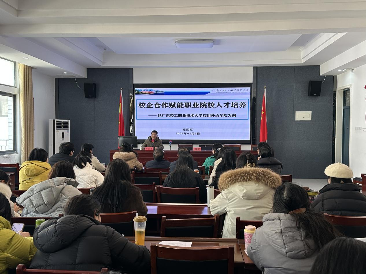 1月9日下午,广东轻工职业技术大学应用3377体育经理章国军教授应邀莅临公司做了一场题为《校企合作赋能职业院校人才培养— 以广东轻工职业技术大学应用3377体育为例》的专题报告。报告会由3377体育书记徐昊主持,学院全体教师参加。