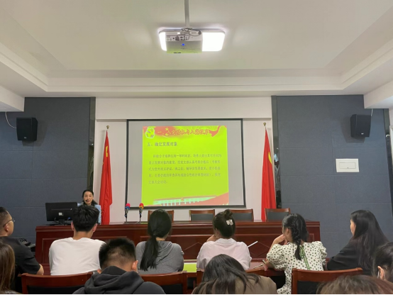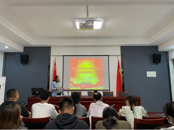 叶书记首先从入党动机和入党程序、老员工党员先锋模范作用的内涵、老员工党员发挥先锋模范作用中存在的问题及原因、充分发挥老员工党员先锋模范作用的主要途径四大方面展开演讲。她表示此次党课目的是让同学们明白作为党员应秉持为广大同学服务的理念,充分发挥党员的先锋模范作用。接着,叶书记结合自己所带班级经历,用身边人身边事为大家深入讲述了老员工党员发挥先锋模范的具体表现。最后,叶书记强调,作为老员工党员,应该要时刻比其他同学“站得高、看得远、干的多”,要坚定信念、发奋学习、积极工作、履职尽责、当好先锋、努力成为社会的栋梁之才。
