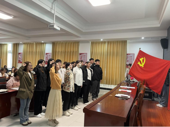 会上,詹海星等12位发展对象分别汇报了自己的基本情况、理论学习和社会实践情况以及需要向党组织说明的其它问题。入党介绍人介绍了对发展对象的培养教育情况,并对他们能否入党表明意见。接着,与会学工支部教师党员对詹海星等12名发展对象能否入党展开充分讨论,进行了无记名投票并形成决议,大会一致同意接收詹海星等12名发展对象为预备党员。宣传委员徐晓双宣读支部决议后,詹海星等12名新党员分别表明了态度。然后,全体党员教师为新党员佩戴党员徽章。学工支部第一党小组组长杨晓睿同志带领全体新党员面对鲜红的党旗进行了庄严的入党宣誓。郭萱瑶、刘力宁分别作为老党员和预备党员代表进行发言。