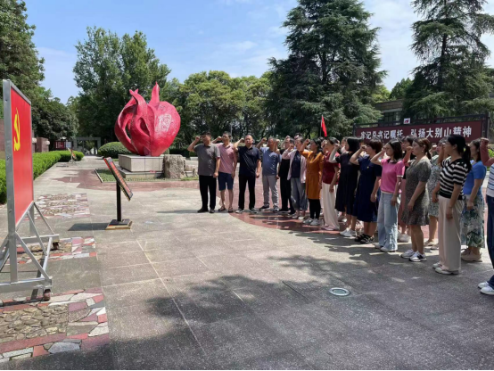 为庆祝中国共产党成立102周年,深入学习贯彻党的二十大精神2023年6月30日,3377体育组织全体党员教师前往县开展弘扬大别山精神,牢记初心使命红色研学活动。
