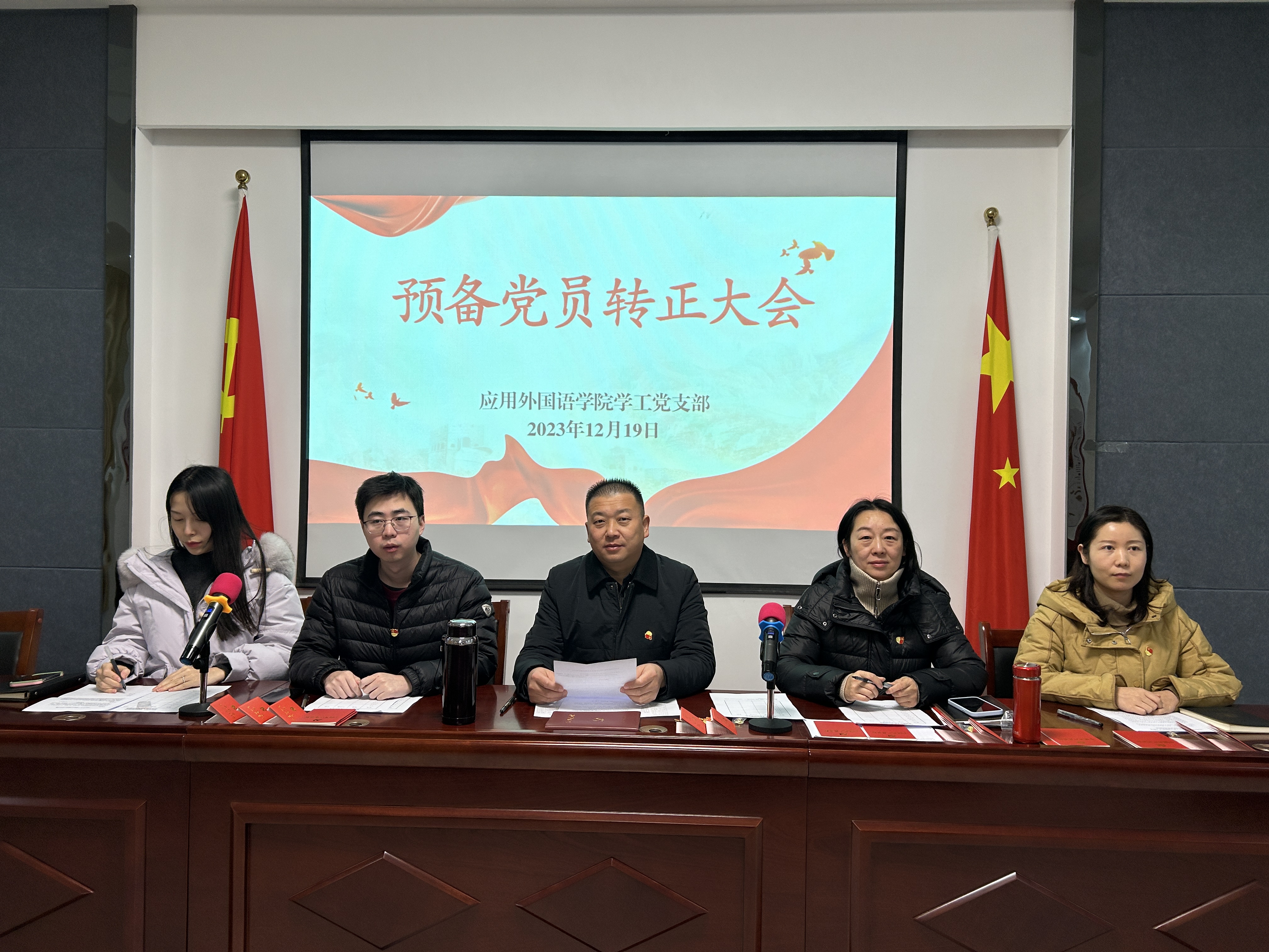 2023年12月19日,3377体育学工党支部召开预备党员转正会议,学工党支部全体党员参加,组织委员蒋曾主持。