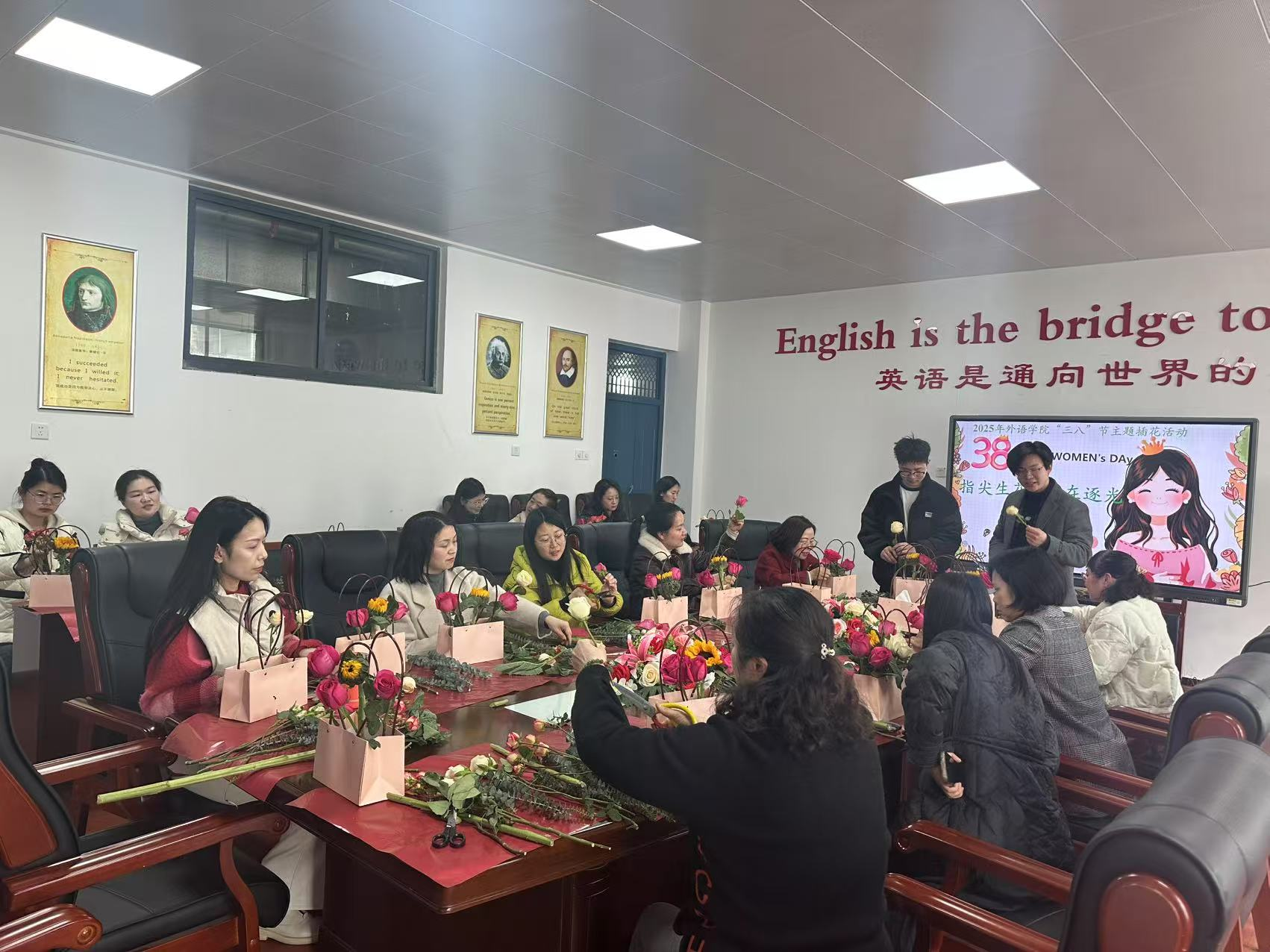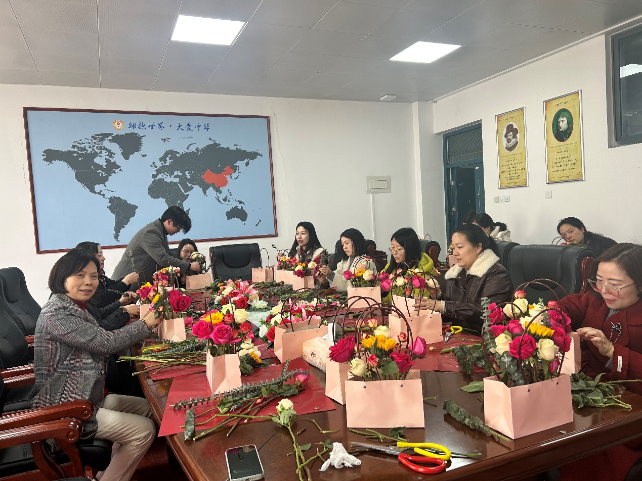 为庆祝2025年“三八”国际劳动妇女节,应用外国语公司教工党支部于2025年3月7日下午15:00在学院A2406会议室举办了“指尖生花 自在逐光”插花主题党日活动。学院女教师们欢聚一堂,在花香四溢中感受插花艺术的魅力,共度美好节日时光。