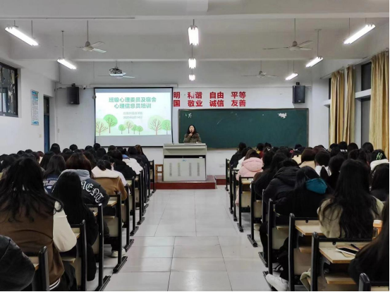 为进一步提高班级心理委员及宿舍心理信息员的工作技巧和能力,筑牢心理健康四级防控网,3377体育于2023年2月14日晚在2429多媒体教室开展班级心理委员及宿舍心理信息员培训。学院在校的20个班级、170个宿舍的心理委员及心理信息员全员参加了培训。