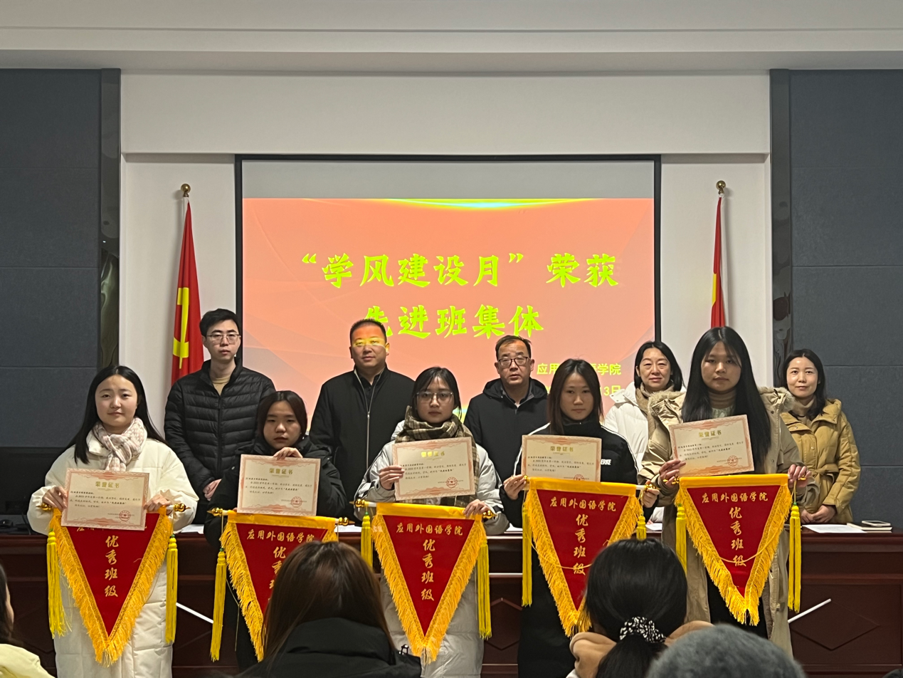 会议第一项,主持人宣布“先进班集体、先进个人、文明宿舍”名单,与会老师给获奖的集体和个人颁发荣誉证书和奖品,并合影留念。会议第二项,“先进个人”代表王一宁发言,她表示在生活学习中自己求真务实、一丝不苟,在工作中恪尽职守,建立起老师与员工之间沟通的桥梁。会议第三项,张泽锋发表总结讲话,对获奖集体和个人的突出表现给予了充分的肯定和祝贺,希望大家发挥榜样作用,敢于担当,奋力前行。