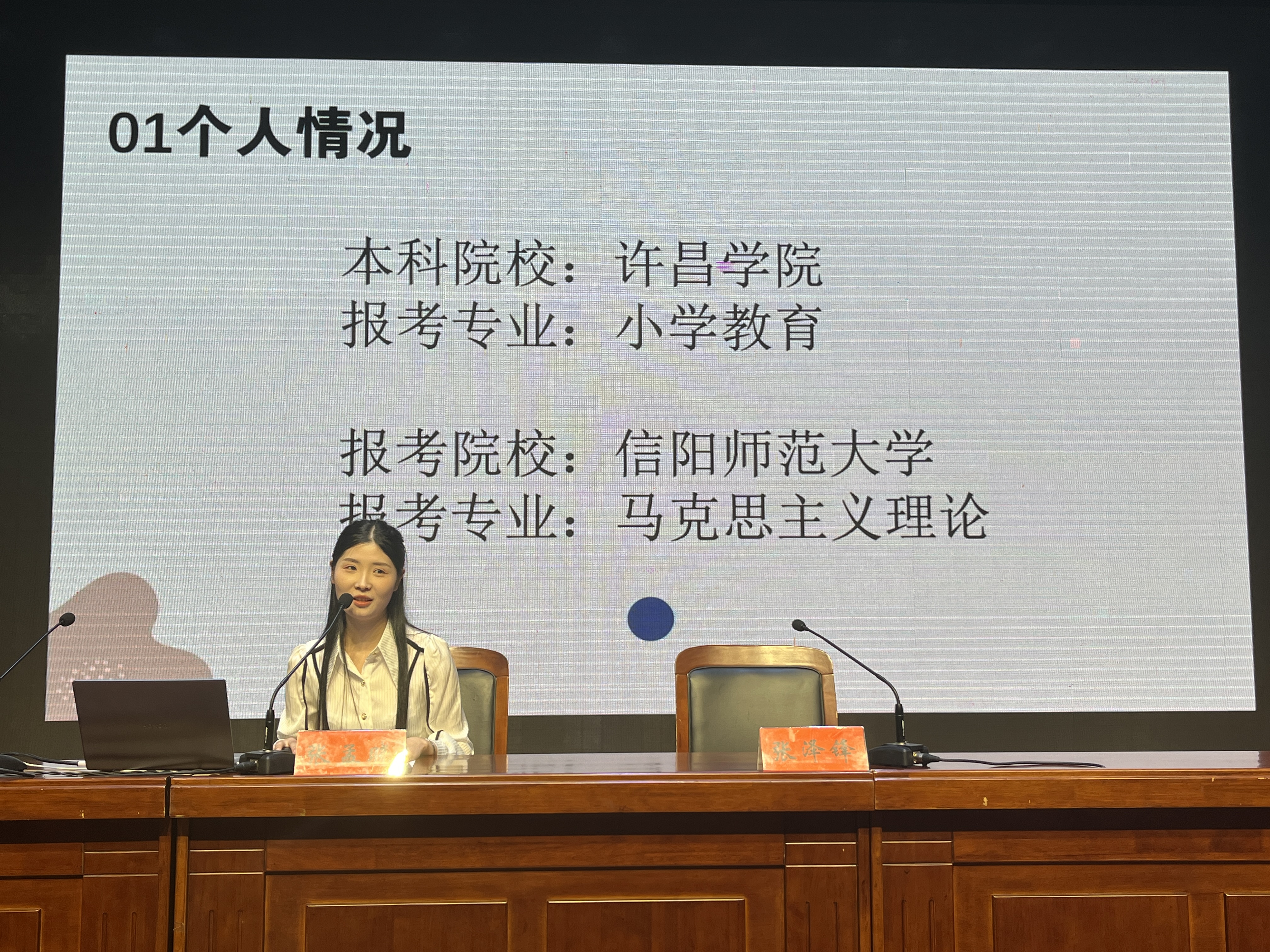 会议伊始,张泽锋介绍张孟晓是中共党员,在校期间曾获得“优秀教学信息员”、“校级十佳青年”、“校级三好员工”、“校级优秀实习生”、“河南省三好员工”、"河南省优秀毕业生”等荣誉,是同学们中的佼佼者。接着,张孟晓从“梦想-奋斗-圆梦”三方面详细讲述自己成功升本和考研的难忘经历,并分享自己的备考方法和宝贵的学习经验。她表示,提升个人学历是完全必要的,但成功并非偶然,只有不断努力,才能抓住机遇,实现梦想。然后,与会同学踊跃提出关于学习和本科专业选择等方面的问题,张孟晓一一细心解答。