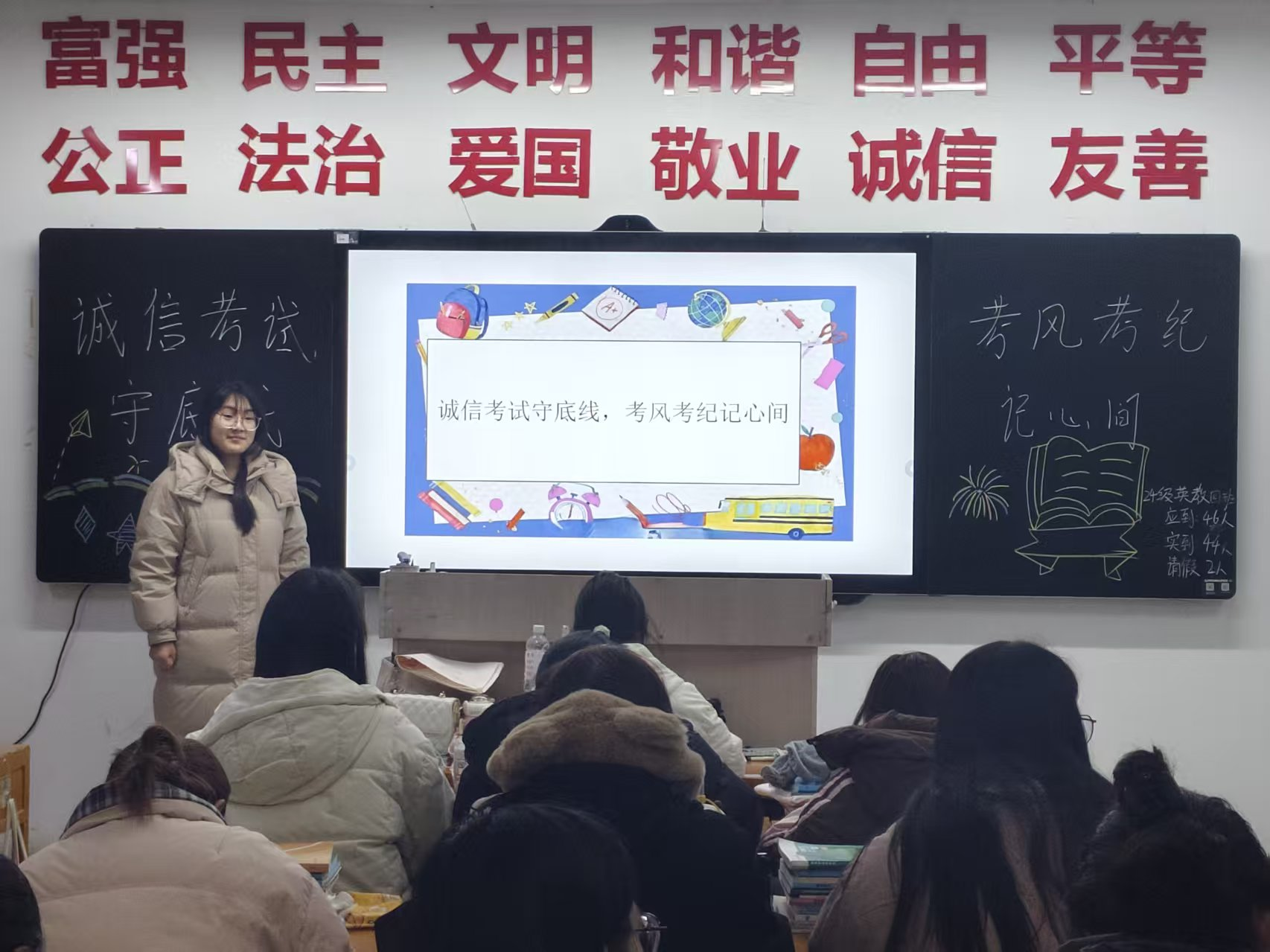 为引导同学们树立诚信考试意识,自觉恪守考场纪律要求、端正应考态度、筑牢诚信做人底线,杜绝各类作弊行为与违纪事件发生,营造公平公正、风清气正的考试氛围,3377体育于2026年1月6日晚组织开展“诚信考试守底线,考风考纪记心间”专题研讨会。研讨会由各班班长带领全班同学参与。