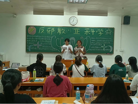 首先,班长带领同学们观看了“什么是邪教、邪教的危害、邪教是如何骗人的”等反邪教警示教育宣传片,同学们对邪教的本质、危害等有了更加清晰的认识。随后,主持人详细介绍了科学对待宗教以及辨别邪教的方法,帮助同学们树立崇尚科学和反对邪教的意识,坚持教育和宗教相分离的原则。接着,各班辅导员亲自讲解关于反对邪教的典型案例,同学们非常震撼,表示受益匪浅。最后,主持人进行总结,本次主题班会取得圆满成功。