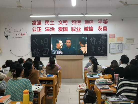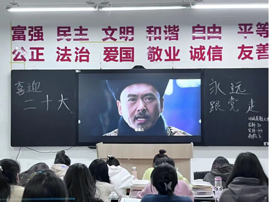 活动现场,同学们观看了红色经典电影《建党伟业》,影片以毛泽东、李大钊、陈独秀、张国焘、周恩来等第一批中国共产党党员为中心,讲述了从1911年辛亥革命到1921年中国共产党成立这个阶段苦难中国的历史画卷。电影用镜头重现了百年前的伟大时刻,在唤醒同学们内心深处感动的同时,更让人有一种不顾一切阻拦,投身祖国建设的冲动。观影结束,同学们纷纷以文字、视频等形式表达自己内心的深切感受,活动取得了良好的效果。
