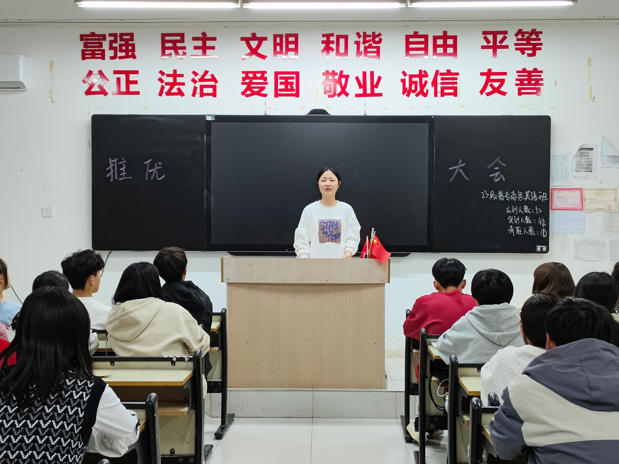 在本次推优大会上,各团支部本着公平、公开、公正的原则,严格遵循推优程序开展推优工作。各班团支书首先对推优具体流程、推优条件进行了详细的介绍;然后清点参加“推优”大会的团员人数,并宣读符合“推优”条件的候选人情况;接着各班候选人分别从思想、学习、生活等方面进行自我评述,重点介绍入党动机和对党的认识;最后各团支部到场团员通过无记名投票的方式进行民主投票,支委会成员完成现场唱票、计票工作,最终推选出各团支部的推优对象。