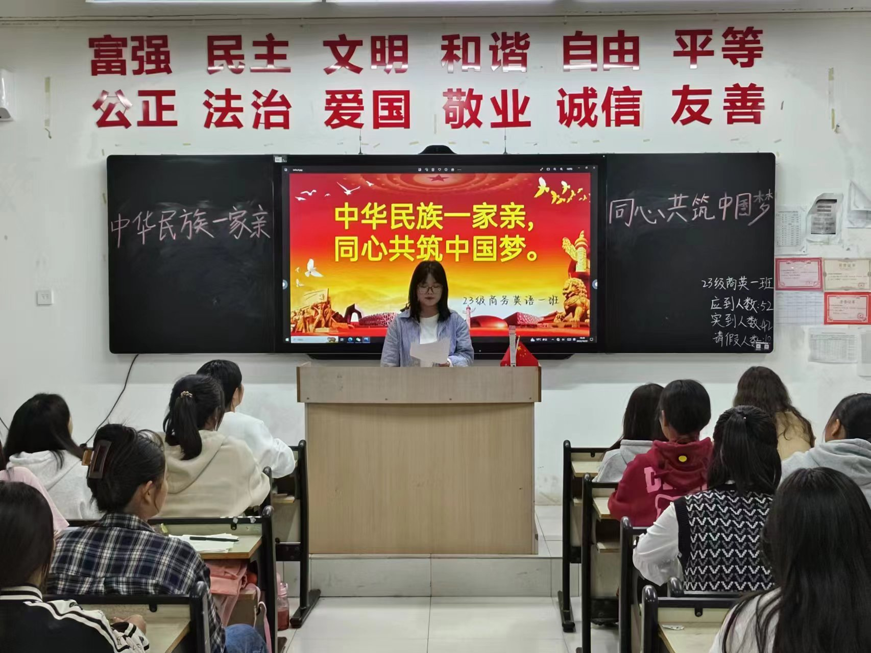 活动伊始,由各班团支书带领本班同学观看相关主题视频,从丰富多彩的视频中领略中华民族共同体的精神内涵。活动第二项,由员工代表上台演讲,对“中华民族一家亲,同心共筑中国梦”主题活动发表自己的感悟,并向同学们发出倡导。活动最后一项,由各班团支书就“中华民族一家亲,同心共筑中国梦”的提出、内涵以及历史渊源结合生动的案例对员工进行详细的讲解,并对此次该活动的开展作出总结,再次倡导员工们以实际行动同心共筑中国梦!